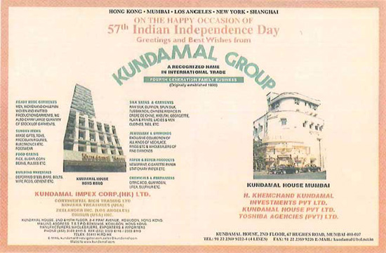 For the Kundamals, Hong Kong is home. “Having been born here and located here for more than 50 years, we want to make the best of it,” father and son said. The Kundamals are not alone in wanting to continue their presence here, hence Hiro Kundamal expressed the wish to President Jiang Zemin when he met the Chinese leader some time ago, that the SAR Government should consider giving long-time Indian residents some kind of tangible recognition for their contribution to Hong Kong trade.